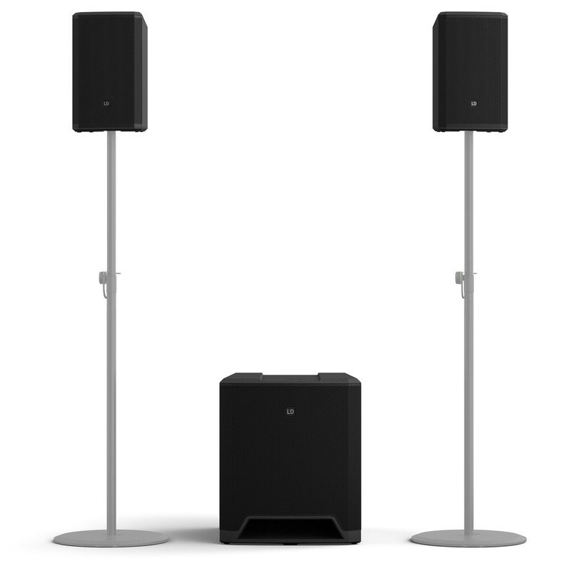 - Powered 2.1 PA with 18" subwoofer and two 8" satellites