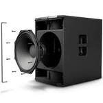 Made from hard-wearing 15 mm birch ply and loaded with 2 x 12" neodymium chassis the band pass subwoofer is driven by two Hypex modules with separate SMPS . The 4 individual frequency groups of the vertical array featuring a total of sixteen 3,5" neodymium fullrange speakers with cast frames and integrated heat sinks plus two 1" Celestion HF drivers on a waveguide are individually powered by 4 discrete Class D amplifiers.