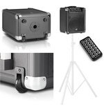 With built-in wheels and extension handles for carting convenience the LDRJ10 active 2-way system is your mobile sound station. It is powered by a rechargeable battery pack for up to 20 hours of continuous operation and provides a 90 Hz - 18 kHz frequency response with 100 watts of peak output.