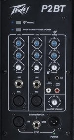 Inbyggt i P2 BT finns ett 3-kanaligt mixerbord där kanal 1 och 2 har mikrofoningång med XLR-kontakt samt en line in med 6,3mm telejack. Kanal 3 har RCA L/R och en 3,5mm tele in samt Bluetooth audio. Alla tre kanaler har individuell volymkontroll samt EQ med Bas och Diskant. Du finner även en mastervolym och teleutgång för att koppla in en extern subwoofer.