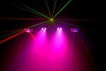Ljussystemet består av två LED PAR-enheter, två Derby-effekter, röda och gröna lasrar samt fyra stroboskopljus. Detta ger en mångsidig visuell effekt med både färgskiftningar, rörelsemönster och ljusintensitet. Enheten har både automatiska och ljudstyrda lägen, samt möjlighet till DMX-styrning med upp till 27 kanaler för den som vill programmera ljuset mer exakt.