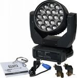 Artikelnummer 1091370LED Wash Moving Head med Zoom: 19x15W RGBW LED, 3 zoner, PAN 540°/TILT 270°, zoom 6°–50°, PowerCon in/ut, DMX/auto/ljud/master-slave, IP20
