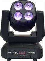MW430 är en kraftfull moving head med fyra 30-watts RGBW-lysdioder, anpassad för både privata tillställningar och mindre scenmiljöer. Den ger ett rikt färgomfång och naturlig färgåtergivning, vilket gör den mångsidig för olika typer av inomhusevenemang.