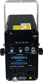 Enheten är utrustad med röda (380 mW), gröna (290 mW) och blå (800 mW) laserkällor och levererar tydliga färgkombinationer i flerfärgade ljusshower. Med hjälp av galvanometerspeglar och motorer på 20 Kpps skapas snabba och jämna rörelser i animationerna.