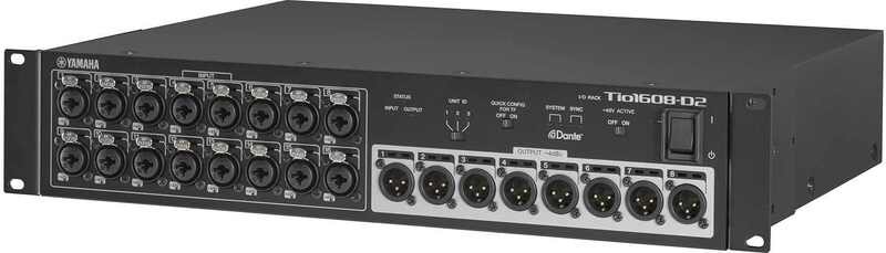 Dante-compatible I/O rack equipped with 16 mic/line inputs and 8 line outputs