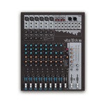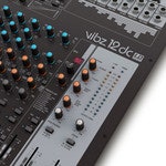 The master section of the mixer includes two effects loops, balanced XLR outputs, group and monitor outputs and a headphone jack. The VIBZ 12 DC also has RCA connectors for recording and playback devices and a digital Digital Effects Section with 100 presets.