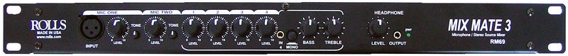 6-kanals rackmixer på 1HE med två mikrofoningångar och fyra linjeingångar. Mikrofonkanalerna har volymkontroll och tonkontroll på fronten samt separat fantommatning.
