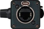 - Ingång (ström + ljud): Låst Cat 5-kontakt