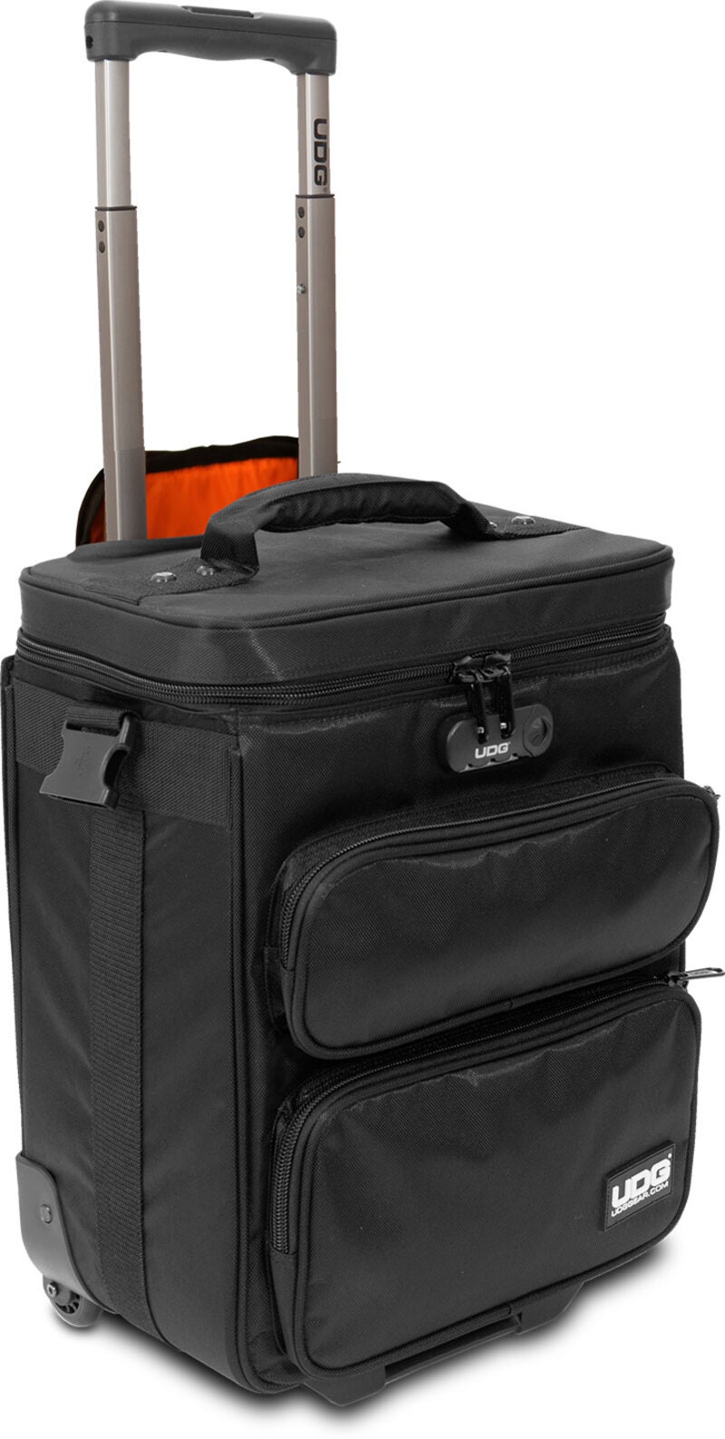 The UDG Ultimate DIGI Trolley To Go constucted with a solid body structure trolley bag with in-line wheels and a two stage-trolley handle makes it the ideal bag for those long airport walkways. Built for the frequent flying DJ, with room for your valuable digital DJ gear, it has a large central compartment, a removable divider with an organiser section for your audio interface and headphones. A padded laptop sleeve to fit a 15" MacBook Pro is provided to protect your computer with two external pockets and a single internal mesh pocket providing storage for cables and documents. The Digi Trolley To Go is the perfect long distance travelling partner.