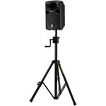 Artikelnummer 1092761Trebent högtalarstativ med ett individuellt nivåjusteringsben, maxhöjd 223 cm, steglös höjdjustering med vev, 35-40 mm smart adapter.