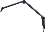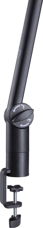 Den integrerade kabelkanalen håller kablarna dolda och organiserade för en ren och professionell arbetsyta. Armen klarar mikrofoner upp till 1 kg och behåller stabilitet i alla positioner. Bordsklämman täcker ett brett klämområde från 3 till 50 mm, vilket gör den kompatibel med så gott som alla bordsskivor. Dessutom ingår en bordsfläns för fast montering.