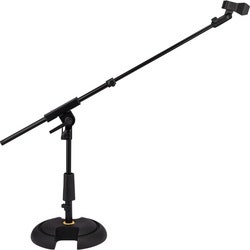 Mikrofonstativ, extra lågt, teleskopbom, h-formad fot, robust, svart.