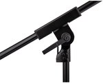 Artikelnummer 1086421Mikrofonstativ, extra lågt, teleskopbom, h-formad fot, robust, svart.