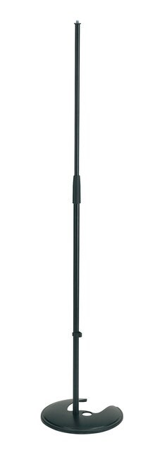 Rakt 2-delat mikrofonstativ, extra lång underdel, slank design, rund fot, svart.