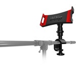 Artikelnummer 1080774Hållare för surfplatta, justerbar 160 - 230mm, klamp för rör upp till 30mm, vridbar 360°, svart & röd.