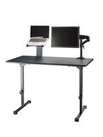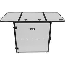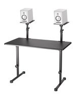 Large folding event table for the professional DJ and many other uses. The 1,170 long and 600 mm wide tabletop offers plenty of space for all kinds of equipment and accessories. With a thickness of 25 mm, the MDF top can bear a load of up to 30 kg. The perfect working height is adjusted in 15 mm steps between 625 and 1,045 mm. For transport or space-saving storage, the two feet are folded in without further ado. The sturdy tubular steel construction and the large round levelling end caps give the practical table a very high level of stability and a secure stand.