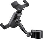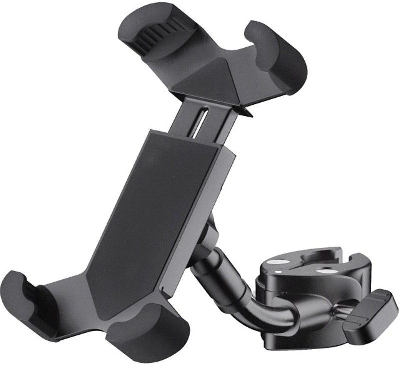 With this universal holder, your smartphone is always within reach. The holder is suitable for all flat devices with a width of 55 to 85 mm and a height of 130 to 180 mm. The depth of 15 mm is also suitable for smartphones with a thick cover or case. The operation is quick and easy. A quick-release button on the back with a latching mechanism unlocks the rubberized clamps and the smartphone can be easily removed. Thanks to the ball joint, the holder can be tilted up and down and rotated 360°. The flexible support arm provides additional individual positioning. A sturdy clamping element with user-friendly wing nut enables quick mounting on any tube with a diameter of 10 to 30 mm.