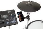 RSH-10 är en hållare för smartphone som kan monteras inom ditt V-Drums-kit. Den gör det möjligt att placera telefonen på en åtkomlig plats för användning med trummodulens Bluetooth, V-Drums Play-appen, musikströmning, videolektioner och innehållsuppdateringar.