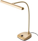 LED-belysning med skarpt, vitt sken till piano, guldfärgad, svanhals, ca 2500 lux, gjuten metallfot, 3m strömkabel.