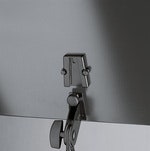 Hyllans V-formade fäste gör stativet snabbt och lätt att montera ner.