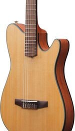 Artikelnummer 1094130Nylonsträngad, thinline cutaway, Sitka-gran, sapele, Nyatoh C-hals, valnöt stall/fretboard, Ibanez T-bar pickup, Custom electronics, D’Addario Coated, 648 mm skala