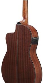 Artikelnummer 1094155Klassisk nylonsträngad, thinline cutaway, Sapele, Okoume hals, Purpleheart greppbräda och stall, 46 mm sadelbredd, Ibanez Under Saddle pickup