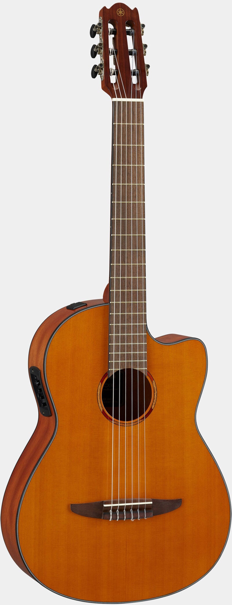 Artikelnummer 1082239Nylonsträngad gitarr, CG Cutaway-kropp, lock i Solid Western Redcedar, baksida och sidor i Nato eller Okume, greppbräda i valnöt, SYSTEM73-elektronik