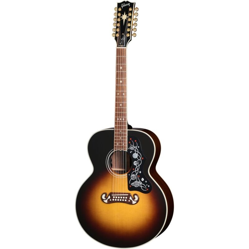 Artikelnummer 1094234SJ-200 12-strängad, Vintage Sunburst, AAA Sitka-gran, AAA rosenträ, lönnhals med valnötslist, agoya-stjärninlägg, Fishman Matrix, Grover Mini Rotomatic, guld, hård case.