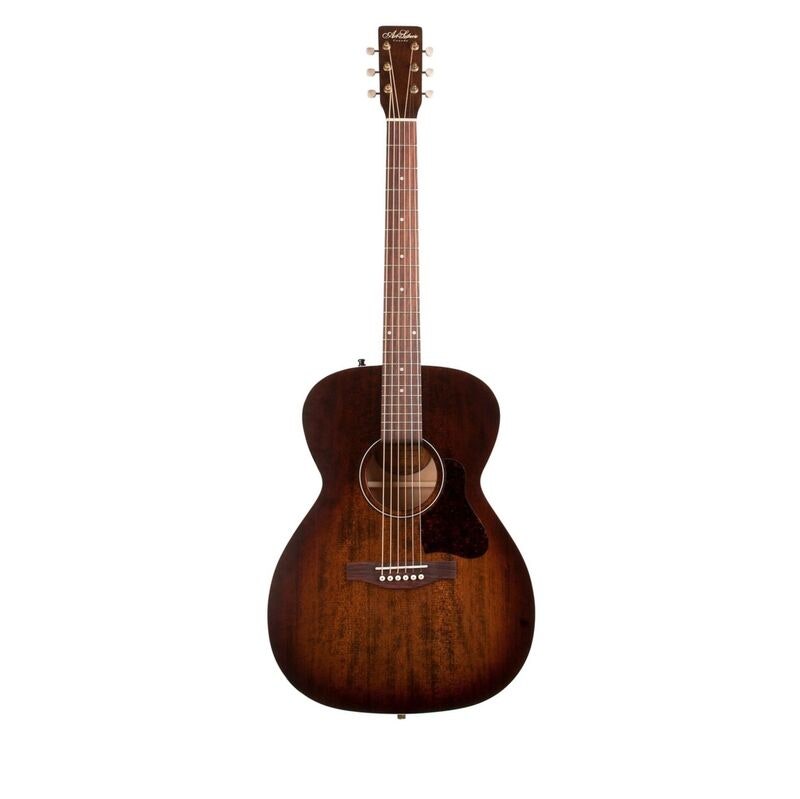 Tillverkad i Kanada med ett solidt cederlock, sidor och bakstycke i vildkörsbär samt hals i silverlönn. Denna träkombination ger en rik och dynamisk ton med tydlig separation mellan strängarna. Den halvblanka Bourbon Burst-finishen framhäver träets naturliga struktur och ger ett elegant uttryck.