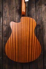 Kroppen är designad för att kombinera ergonomi och spelbarhet med ett öppet och projekterande ljud. Den massiva Sitka Spruce-toppen tillsammans med sidor och botten i Sapele ger en tydlig diskant, varm mellanregisterrespons och en stabil bas. Den specialutvecklade X-M-bracingen ger bred ljudbild, bra projektion och lång sustain – perfekt för både plektrumspel och fingerspel.