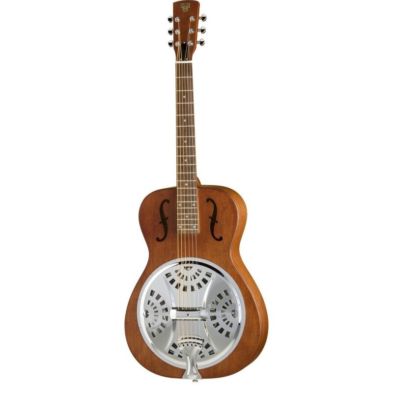 Dobro Hound Dog Roundneck fångar den klassiska amerikanska resonatorgitarrens själ med ett ljud som genomsyrar bluegrass, blues och countrymusik. Sedan 1920-talet har Dobro® varit en av grundpelarna i amerikansk akustisk musik – och detta instrument lever vidare i samma tradition. Med sin kropp i flammig lönnfanér, f-hål för tydlig projicering, samt handgnuggad brun finish och nickelpläterad hårdvara, är detta en gitarr som både ser fantastisk ut och låter lika bra.