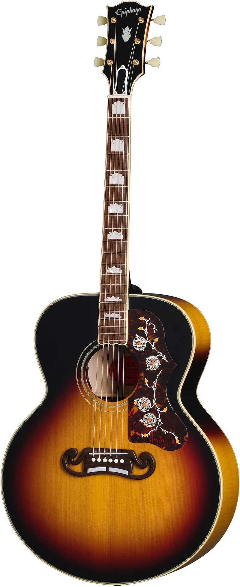 Epiphone, i samarbete med Gibson™ Custom Shop, presenterar stolt 1957 SJ-200, en hyllning till den legendariska "King of the Flat-Tops". Den här imponerande jumbo-modellen har använts av otaliga musiker genom historien, från cowboy-legender till country-, folk- och rock-ikoner, och fortsätter att inspirera dagens artister.