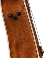 Kroppen är byggd helt i massivt okoume, med X-ribbat lock och sidor/botten i samma träslag. Detta ger stark projektion, volym och en varm basrik ton. Halsen har en smal ”C”-profil, 25,5” mensur och en tilt-back 6-in-line-huvud för den klassiska Fender-karaktären. Extra detaljer inkluderar kroppsbinding i lönn, matchande rosett och ben-sadel/nut för rik harmonisk respons.