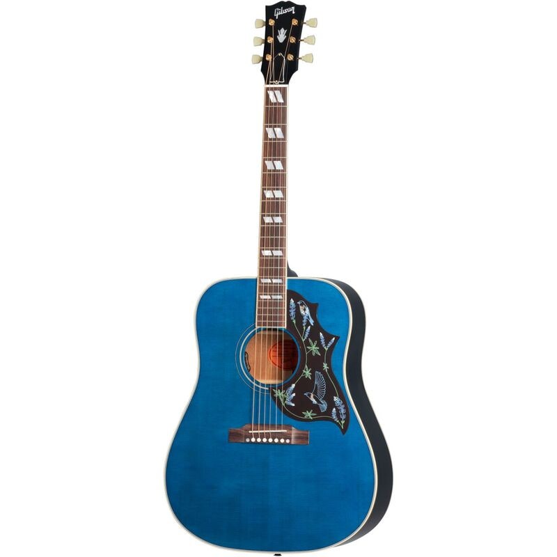 Artikelnummer 1094183Hummingbird body, Sitka spruce top, mahogany body, LR Baggs VTC, 24.75” scale, round mahogany neck, rosewood bridge, gold hardware, Bluebonnet finish, hardshell case.