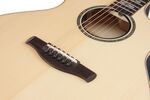 AE-kroppen med cutaway ger en bekväm spelposition och balanserad ton för både studio och scen. Abalone- och lönninlägg, tillsammans med rosett och ljudhålsbinding, kompletterar designen. Guldfärgade stämskruvar och Ibanez Advantage-stift används för hållbarhet och precision.