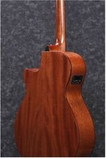 Den compacta single-cutaway AEG-kroppen ger enkel åtkomst till de högre banden. Gitarren har Pau Ferro body binding, Ibanez Advantage stallpinnar, kromade die-cast-stämskruvar samt rosett i abalone och trä. Finishen är Natural Low Gloss.