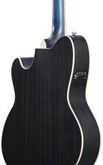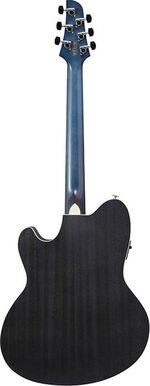 Artikelnummer 1086210Akustisk gitarr, 6 strängar, Talman Double Cutaway-kropp, flammad lönntopp, 648 mm mensur, sadelbredd: 42 mm, Ibanez AP2 Magnetic pickup, färg: Open Pore denim Blue