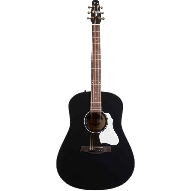 Seagull S6 Classic Black A/E är en dreadnought-modell med lock i solid ceder och kropp i kanadensisk vildkörsbär. Den svarta halvblanka finishen sträcker sig över både lock, sidor och botten, vilket ger ett enhetligt utseende. Halsen är tillverkad i Silver Leaf-lönn och greppbrädan i rosenträ. Modellen är utrustad med Presys VT-systemet för förstärkt ljud och enkel anslutning till förstärkare eller ljudsystem.