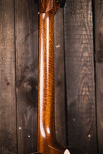 Visuellt utmärker sig modellen med europeisk flammig lönn-bindning, guldpläterade band, öppna guldstämmskruvar och en 1930-talsinspirerad script-logotyp i pärlemor på huvudet.