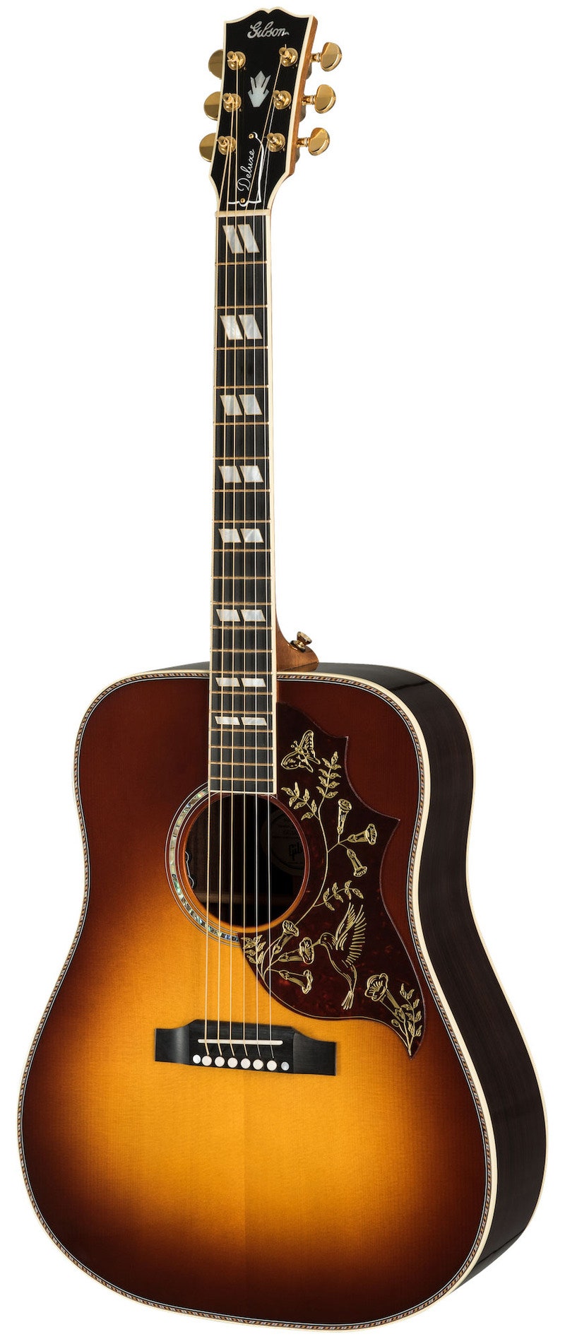 The unmistakable Gibson Hummingbird™. Upgraded with beautiful rosewood back and sides, this guitar has the full and round sound of the traditional Hummingbird with the added tonal nuances of rosewood. The benchmark for voice accompaniment. Now hand-built with an ebony fingerboard and bridge. Finished with an LR Baggs™ VTC pickup for easy studio quality plug and play anywhere!