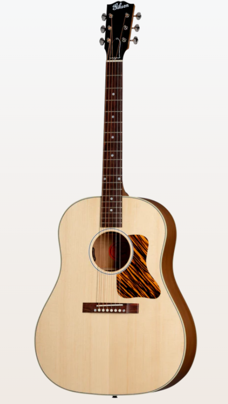 J-35 lanserades först 1936, mitt under den stora depressionen, som ett mer prisvänligt alternativ till Gibsons tidigare jumbo-modeller – utan att tumma på ljudkvalitet. Den nya J-35 30s Faded återskapar denna vintageklassiker med en satin nitrocellulosalack som ger gitarren ett autentiskt, åldrat utseende och känsla. Med topp i Sitka-gran, kropp i mahogny och ett varmt, rundat halsgrepp levererar den en rik och balanserad ton. LR Baggs VTC-elektronik och ett robust hårt fodral gör den redo för scen såväl som studio.
