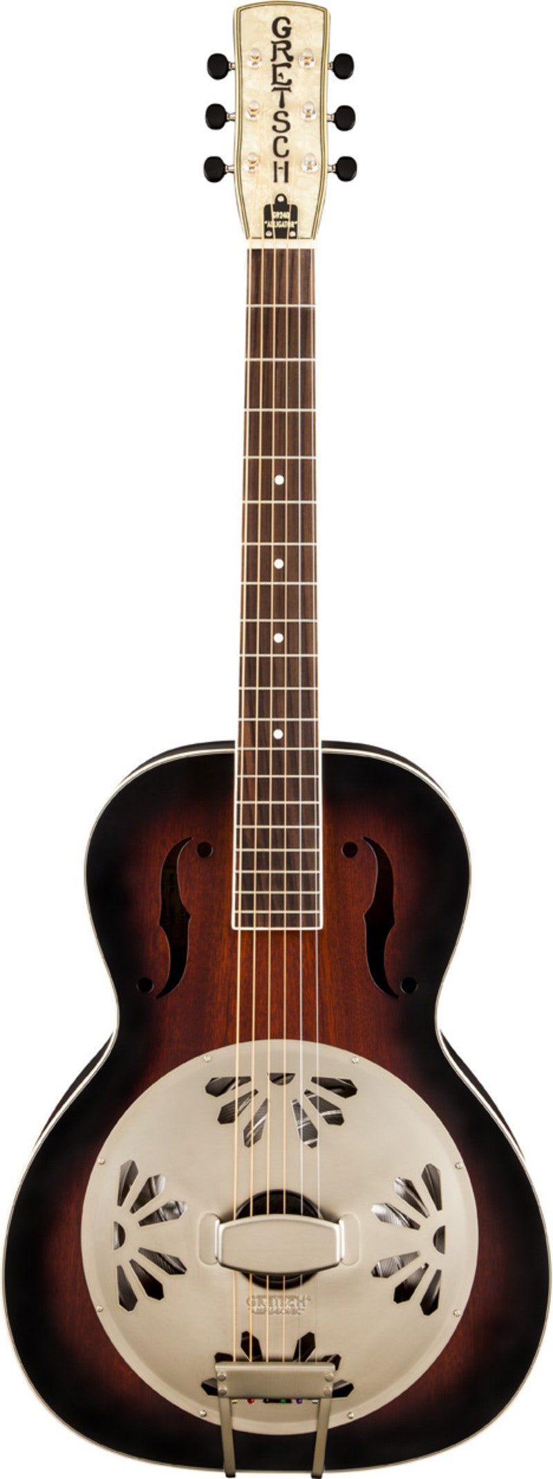 The miracle of volume! When you play chunk rhythm, finger-style, bottleneck or anything else, the all-mahogany deluxe-appointed G9240 Alligator Biscuit Roundneck resonator guitar projects its distinctively swampy tones all the way to the back door of any dance hall. Like all fine Gretsch resonator guitars, the vital feature of the G9240 is the all-new Gretsch "Ampli-Sonic™" diaphragm (resonator cone). Hand-spun in Eastern Europe from nearly 99-percent pure aluminum, the Ampli-Sonic diaphragm yields an impressive quality and volume of tone.