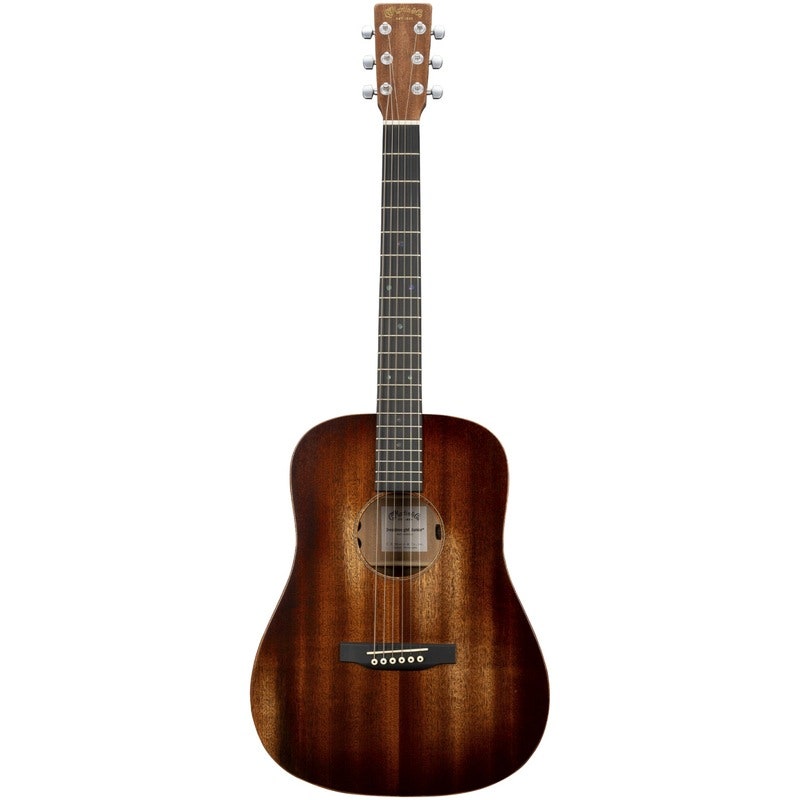 En Dreadnought i junior-format med inbyggt mikrofonsystem som trots den nättare kroppen har en stor, dynamisk ton. Just Streetmaster-modellen är designad med patina och vintage i åtanke, det ser helt enkelt ut som gitarr med många år bakom sig. Locket är tillverkat i solid gran medan sidorna och baktstycket utgörs av solid Sapele vilket tillsammans ger en ton med ett varmt projicerande mellanregister, en tydlig diskant med briljans i toppen. Skalan är 24.9" vilket gör att instrumentet spelas som ett fullstort instrument trots den något mindre kroppen. Bracingen är av Scalloped-X design och instrumentet har ett Martin E1 mikronfonsystem som har en inbyggd dold stämapparat och kontroller för volym, ton och Phase.