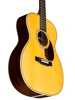 Den klassiska Auditorium-kroppen, även känd som 000 är ett instrument som passar lika bra för solo-, finger- eller plektrumspel. OM-28 har med sin längre skala en balanserad ton där strängtrycket som blir adderar attack och en klar briljans. Locket med en Herringbone-rosett är tillverkat i Sitka-gran medan sidor och botten har utvunnits ur Indisk rosewood.