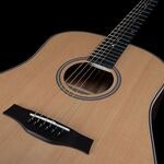 Artikelnummer 1092786Dreadnought, solitt granlock, mahogny sidor och botten, Richlite® greppbräda, 46 mm nutbredd, 25,5" skala, semi-glans finish, Fishman onboard-förstärkare