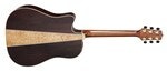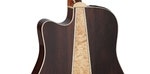 Dreadnought-kropp med solitt granlock samt sidor/botten i svart valnöt & lönn i läckert V-format mönster.