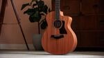 Taylor 24ce är en fullstor akustisk gitarr med lock i solid mahogni och sidor/botten i lager av afrikansk sapele. Denna träkombination ger en fokuserad ton med tydlig karaktär i mellanregistret, lämpad för en rad olika spelstilar och situationer.