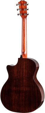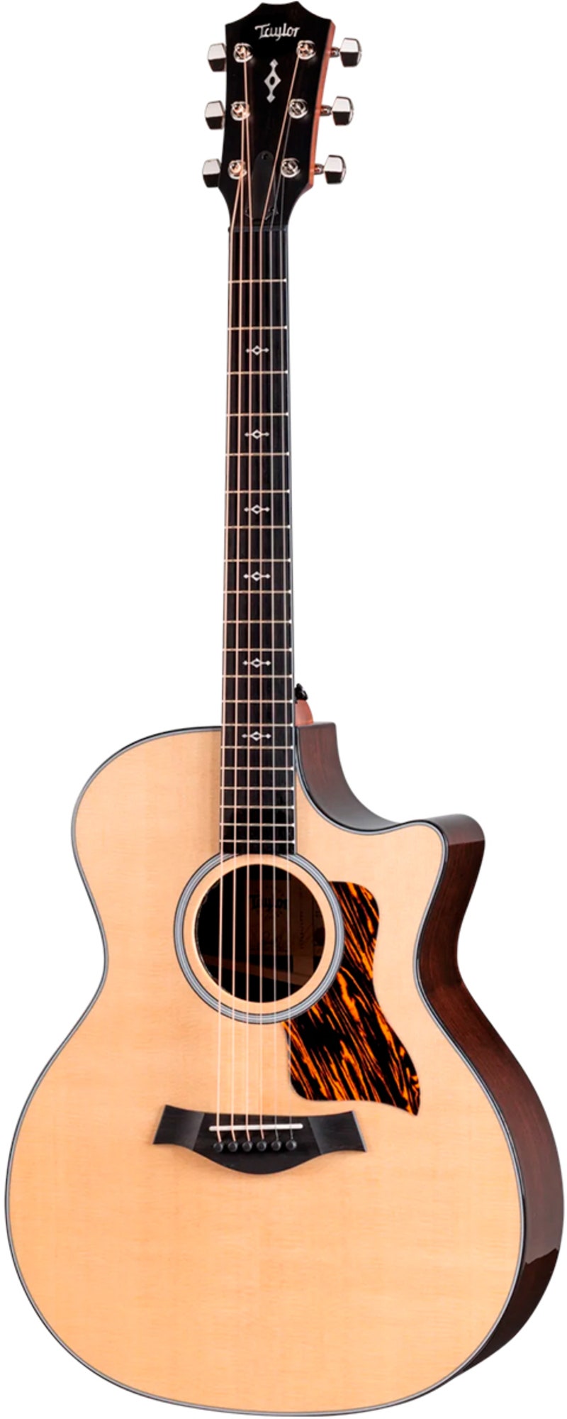 414ce bygger på Taylors klassiska träkombination av gran och rosenträ, vilket resulterar i varm bas, kristallklar diskant och ett något urholkat mellanregister som ger god separation i komplexa ackord och arrangemang. Den nya scalloped V-Class®-stagningen förstärker lågregisterdjupet och bidrar till ökad volym, sustain och harmonisk samstämmighet över hela greppbrädan.