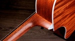 Locket i Western Red Cedar bidrar med värme och hög anslagskänslighet, medan Neo-Tropical Mahogany i botten och sidor ger en torr, träig och fokuserad tonkaraktär. Kombinationen ger ett varmt och direkt uttryck med tydlig mellanregisterkaraktär.