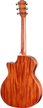 Kroppsformen är Grand Auditorium, en av Taylors mest mångsidiga former, som erbjuder en balanserad kombination av komfort, projektion och tonal bredd. Venetian cutaway ger smidig åtkomst till högre positioner på greppbrädan.